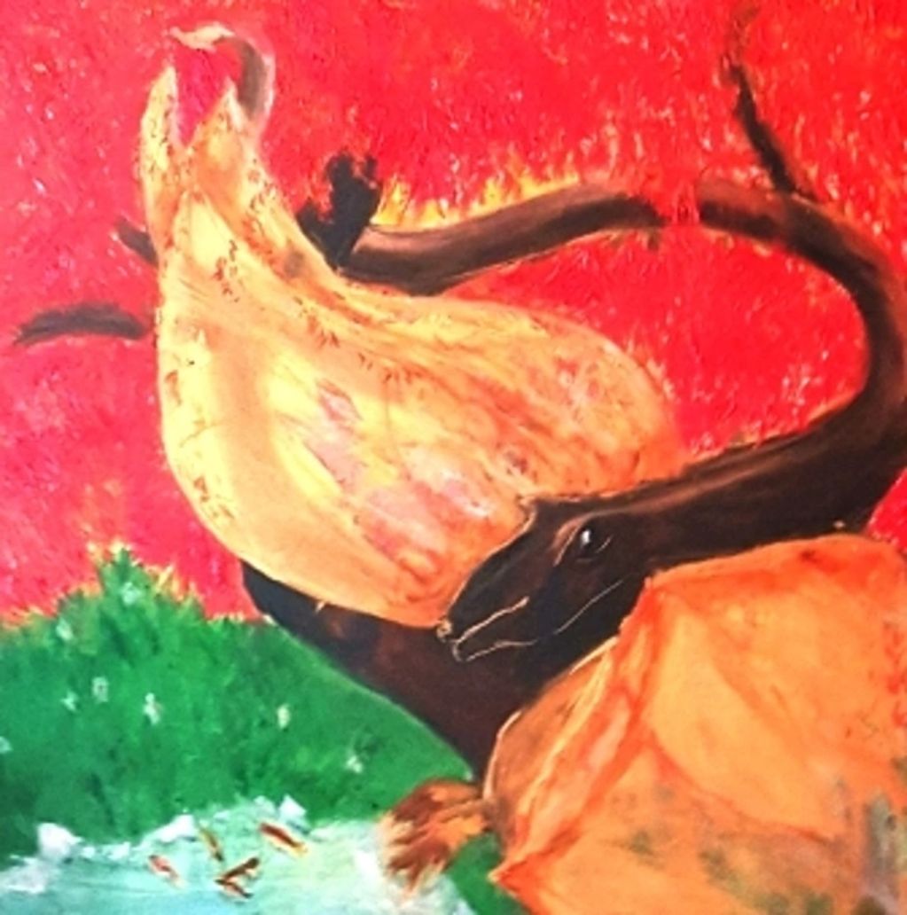 Oil on Canvas, Medium, Shells, Gold Oil Pen